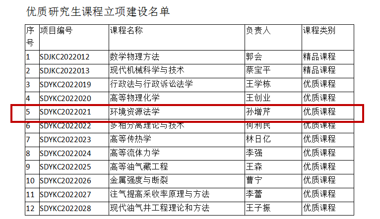 【中国石油大学】中国石油大学孙增芹《环境资源法学》优质研究生课程立项
