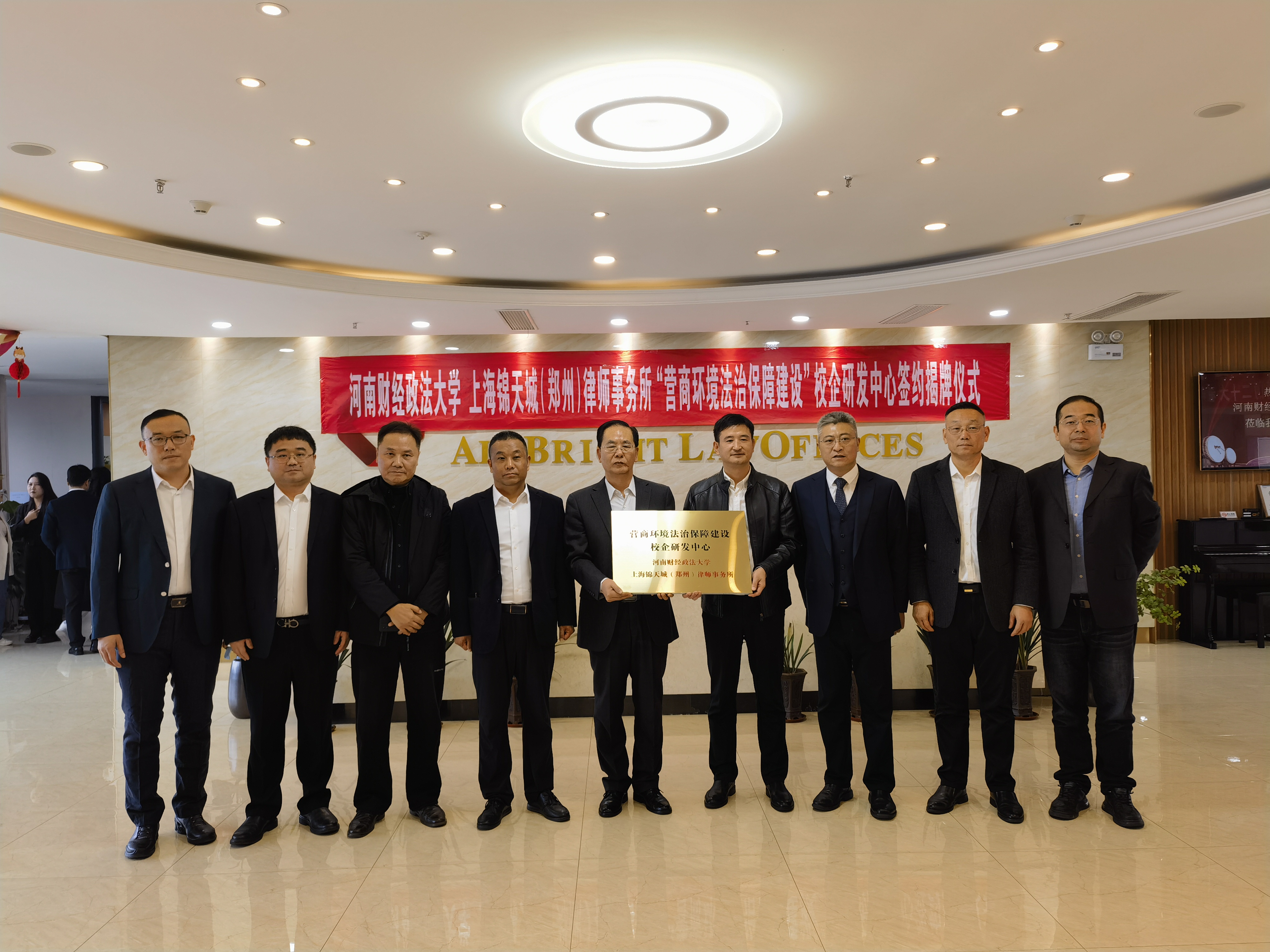 11月12日,河南财经政法大学与上海锦天城(郑州)律师事务所合作共建“营商环境法治保障建设校企研发中心”签约揭牌仪式在上海锦天城(郑州)律师事务所成功举行。