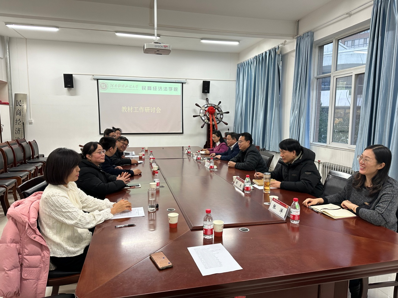 会上,弓永振组织大家学习了教育部、河南省教育厅及学校关于高等教育教材建设的文件,听取了社会法教研室关于《经济法概论》校级规划教材工作的汇报,并对《经济法概论》的修订工作提出了意见。时从庚就思想政治教育融入专业教育、张良就结合最新立法修订教材、李嵩誉就最新研究成果融入教材、张洋就知识产权强国战略融入教材作了发言。