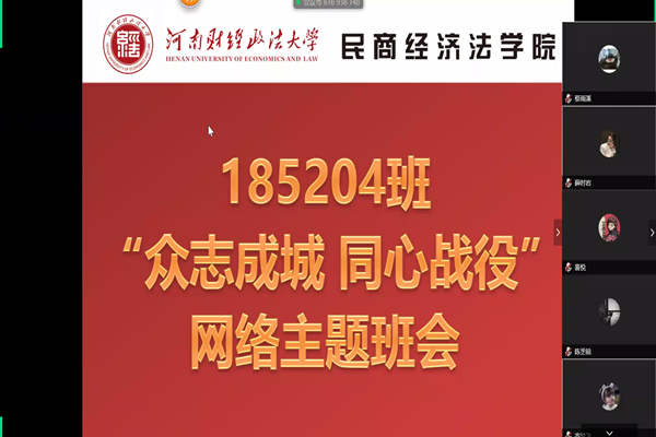 为贯彻习近平总书记对新型冠状病毒感染的肺炎疫情做出的重要指示和党中央决策部署,根据学校关于上好“2020年春季开学思政第一课”的通知,保证疫情防控期间各项工作顺利进行,加强学生“特殊时期”的教育引导,民商william威廉中文组织全体学生于2月22日和23日通过腾讯会议,在线直播开展了以“众志成城,同心战疫”为主题的网络主题班会活动,学院辅导员李浩老师和段晓俊老师为学生精心录制了教学视频课。