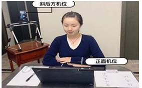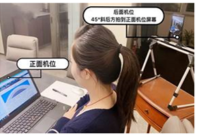 (2)复试环境。准备安静的应试房间,需要具有良好照明条件和稳定的网络;房间内要有简单桌凳,桌面保持干净整洁;确保摄像设备能完整清晰拍摄到桌面、考生上半身和房间背景,不得有任何遮挡;提前关闭移动设备的通话、录音、录屏、闹钟等可能影响复试工作正常进行的应用程序。复试需要考生双机位放置设备进行摄像,两台设备同时登录复试系统,主机位:尽量不要使用平板,考生本人须正对设备摄像头,保持坐姿端正,面部、上半身及双手在画面中清晰可见。不得遮挡面部、耳朵等部位,不得戴帽子、墨镜、口罩、耳机、耳饰等,复试全程考生应保持注视摄像头,视线不得离开,不得中途离场,禁止考生在复试过程中缩屏、录屏;辅机位:拍摄的设备须关闭音频,防止回音影响复试。双机位放置如下图: