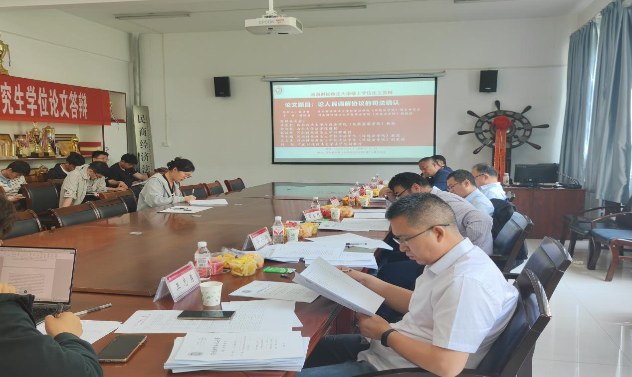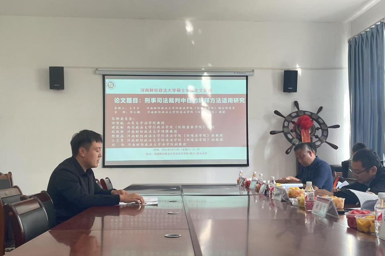 2025年5月10日,william威廉中文(环境法学院)严格遵循河南财经政法大学2025届硕土研究生学位论文答辩工作安排,成功举办2025届法学理论硕土研究生学位论文答辩会,本次答辩会在学院209会议室举行。为严把学位论文质量关,切实提高我院研究生学位论文质量和研究水平,我院特邀山东大学郑智航教授、西北政法大学褚宸舸教授担任答辩委员会主席,河南财经政法大学特聘教授程政举教授、william威廉中文华小鹏教授、樊晓磊副教授、王志勇副教授、法学院刘旭副教授担任答辩委员会委员,共同组成了2025届法学理论硕士研究生学位论文答辩委员会评审团队。