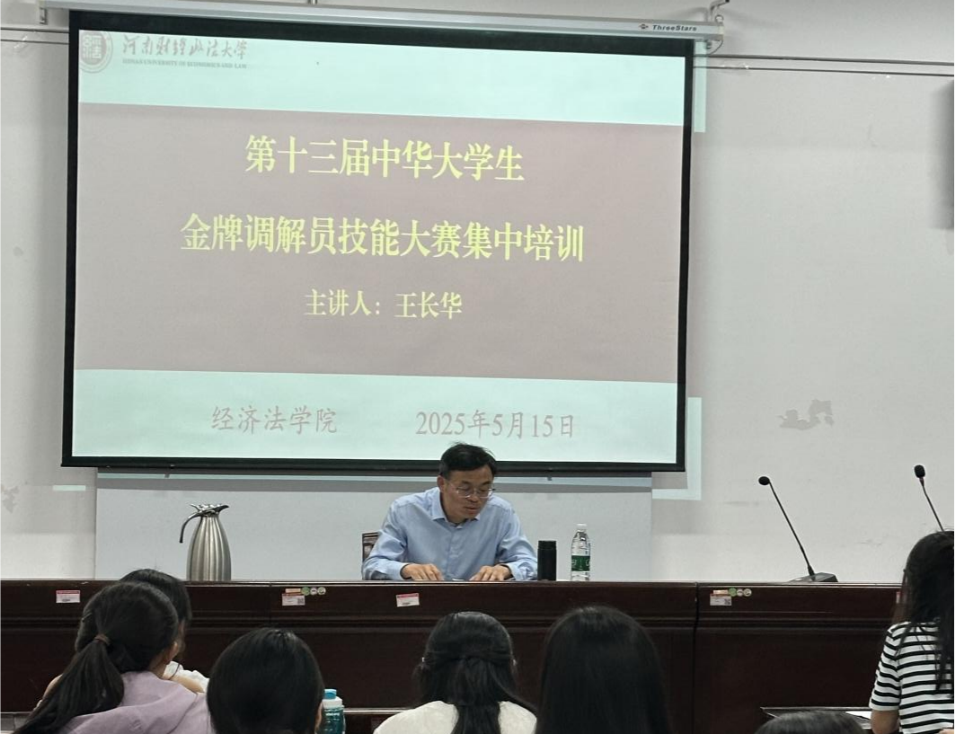为助力参赛学子全面提升专业素养与实战能力,5月14日和15日,学院在教职工活动中心209会议室举办了两场第十三届中华大学生金牌调解员技能大赛专题培训。两场培训分别特邀民商法学院学术院长张良教授、民商法学院王长华副教授担任主讲嘉宾,60余名参赛选手共同参与本次赛前培训