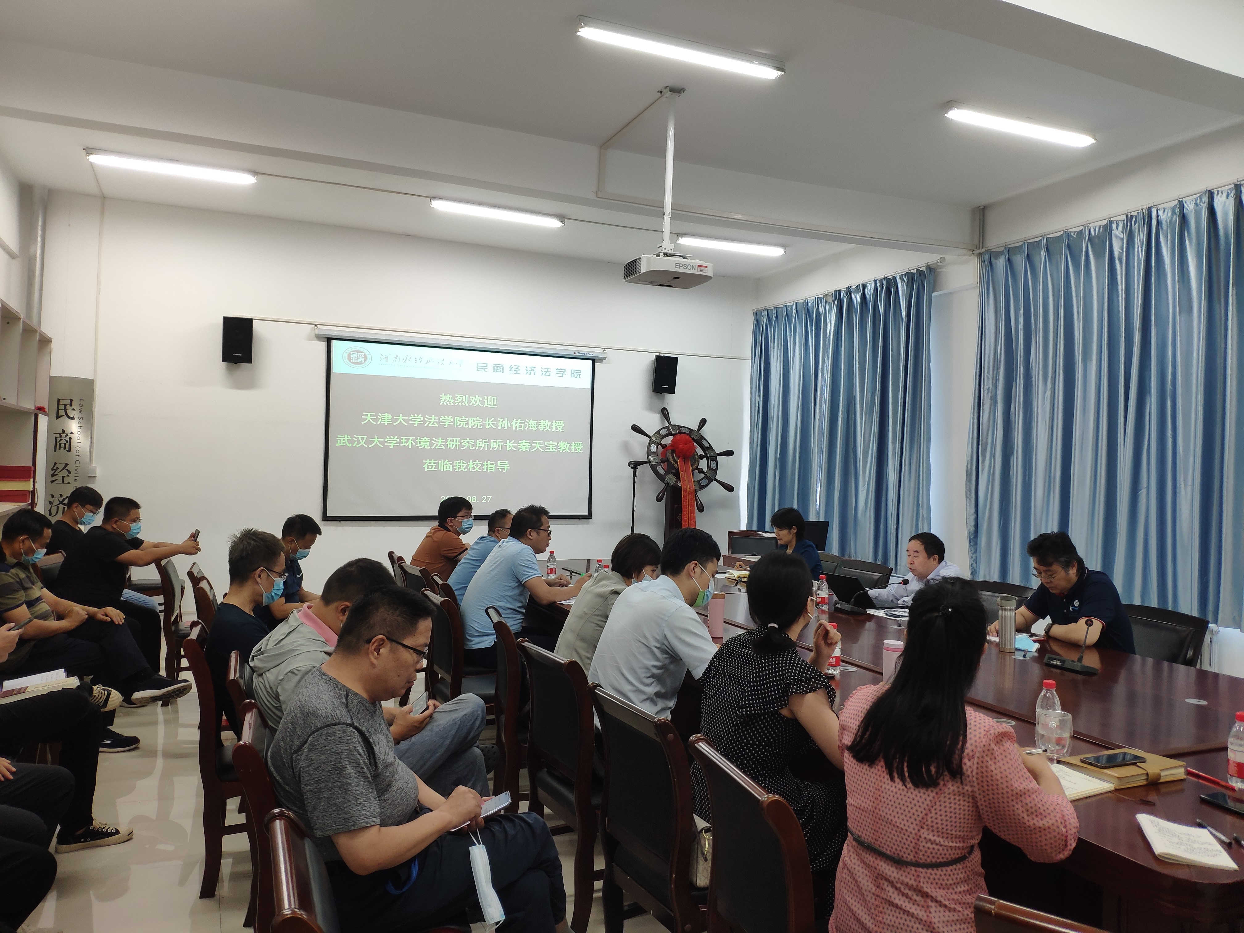 2022年8月27日下午,天津大学法学院院长、博士生导师,中国绿色发展研究院执行院长孙佑海教授,武汉大学珞珈特聘教授、博士生导师,武汉大学法学院副院长、武汉大学环境法研究所所长秦天宝教授,应学院邀请在216会议室作学术报告。报告由民商william威廉中文院长陈晓景教授主持,学院部分教师代表参加。
