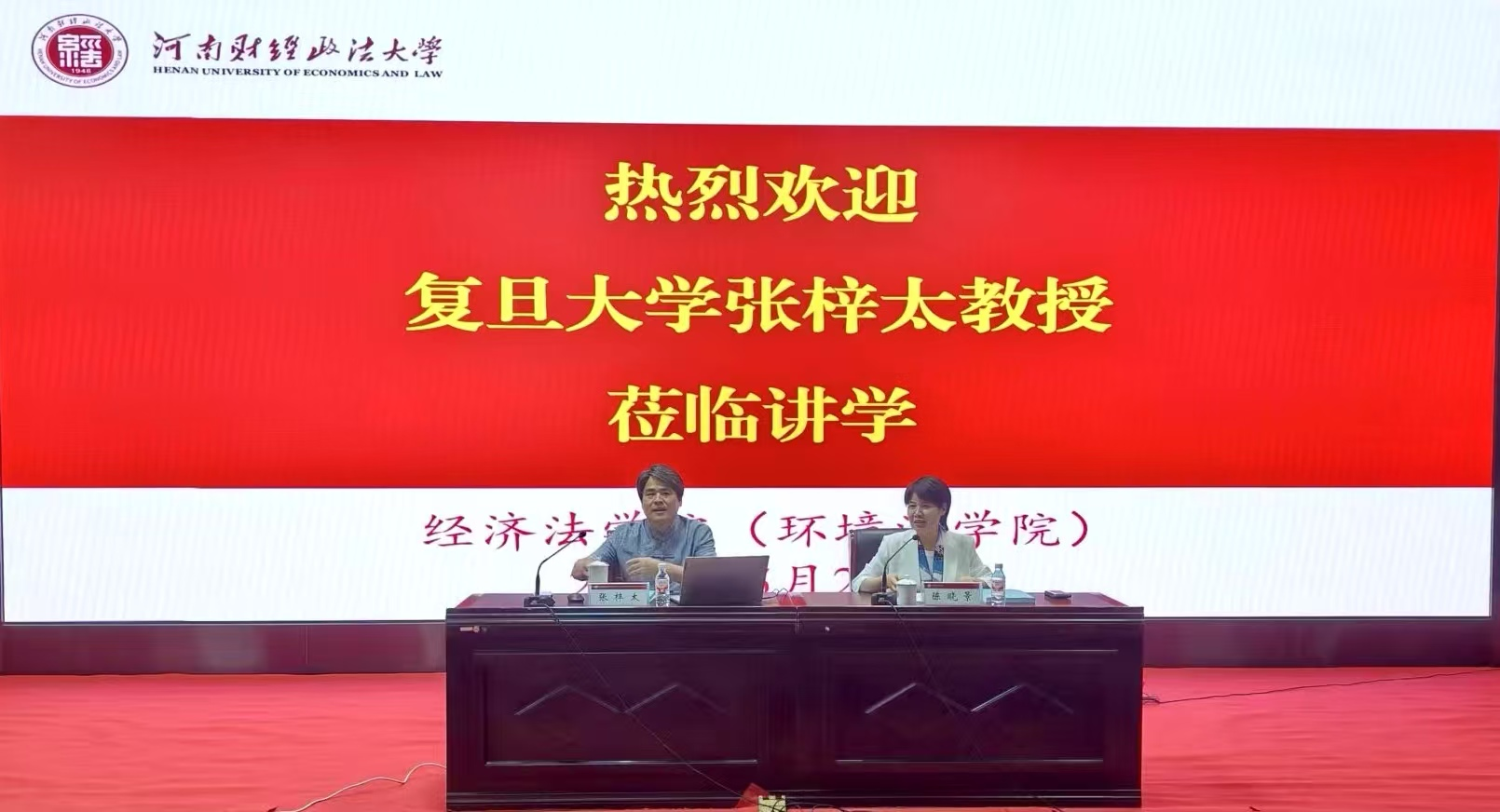 5月23日下午,复旦大学法学院张梓太教授应邀在我校郑东校区行政楼二楼报告厅作专题讲座,主题为“编纂一部高水准的中国生态环境法典”。副校长陈晓景教授主持讲座,经济法(环境法)学院院长樊晓磊、副院长李依林,以及法学专业200余名师生参加。